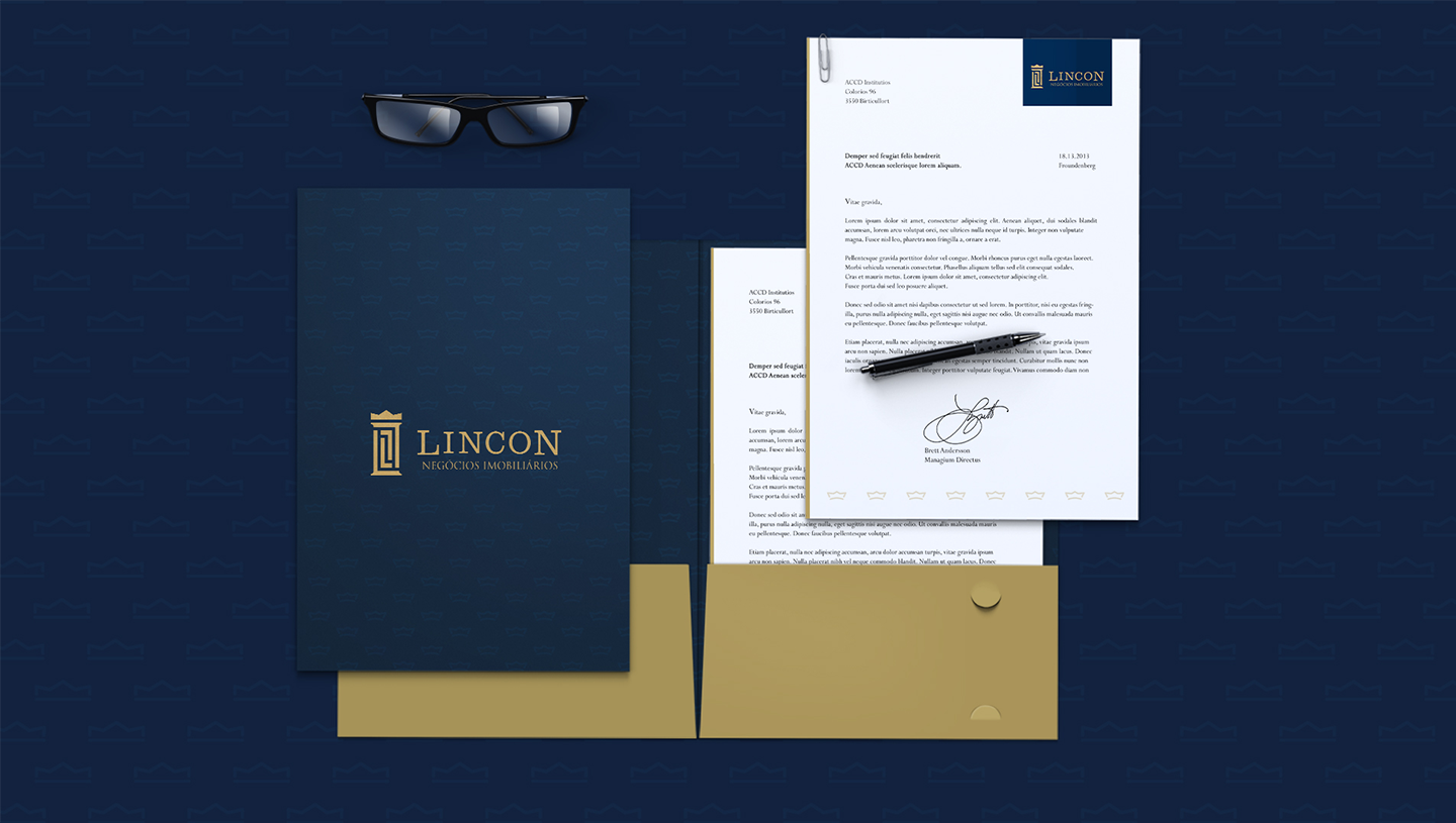 Um dos objetivos da composição foi o de representar a ligação entre o cliente e empresa, estabelecendo uma relação personalizada e consistente. Essa definição é representada pela interação entre as letras “L”. E, para fortalecer os conceitos de confiança e credibilidade, um tom de azul escuro foi utilizado na identidade visual, e como cor complementar o dourado para ressaltar aspectos de sofisticação da marca. A configuração do símbolo remete diretamente a uma coluna grega, a aplicação da coroa ao topo representa um dos principais objetivos do cliente de ser referência e líder no mercado. A criação deste símbolo faz alusão a reis e líderes, transmitindo conceitos de solidez, força e poder.